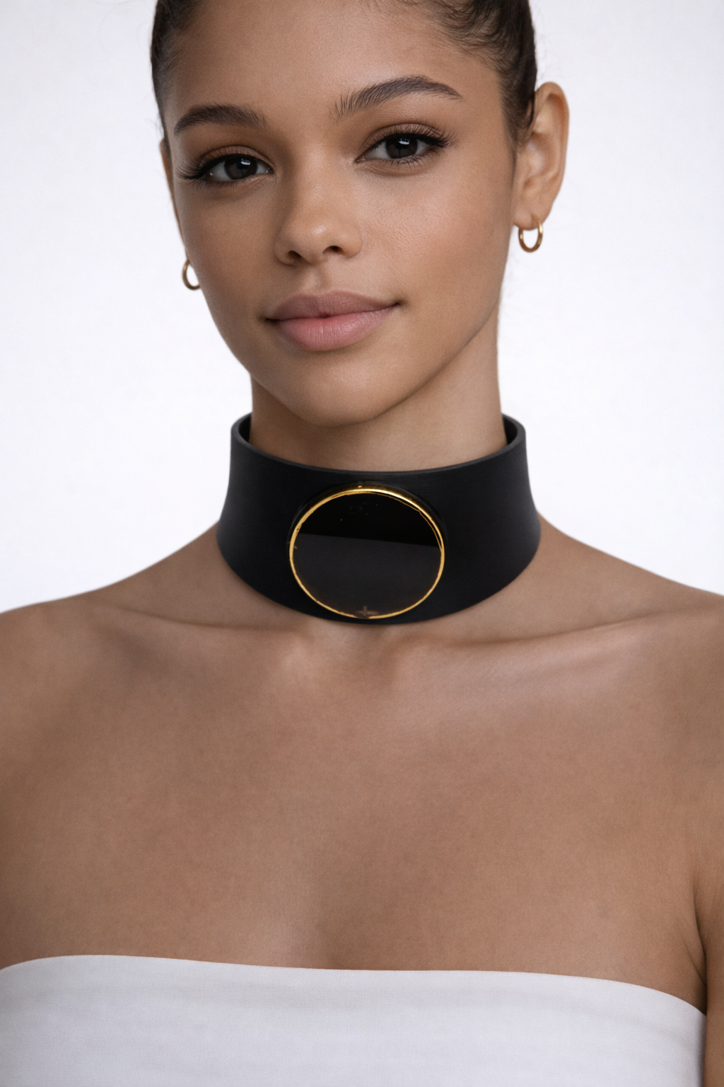AGATA DARK nasce su base STRONG:una struttura che occupa tutto lo spazio del collo, avvolgente, decisa, presente. Non è una collana discreta.Non è pensata per passare inosservata.È un pezzo da indossare consapevolmente.Richiede presenza, postura, carattere.